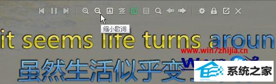 2、然后我们可以将鼠标移动到歌词上,会弹出一些操作按钮,歌词太大了我们可以点击“缩小歌词”,如果还是太大可以多点几次;