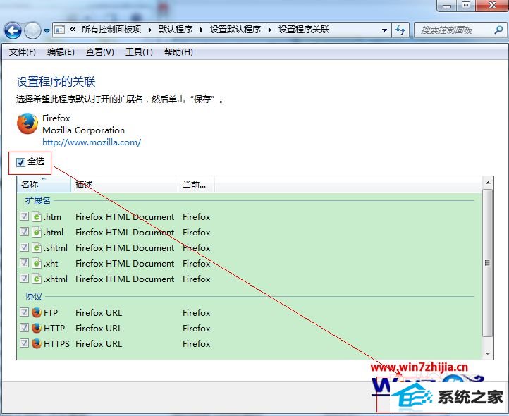 2、选择“firefox”,选择第一项“将此程序设置为默认值”;