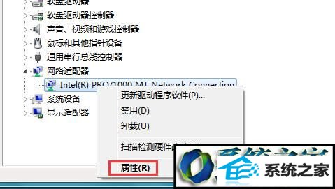 3、右键点击本地网卡驱动,选择【属性】选项;