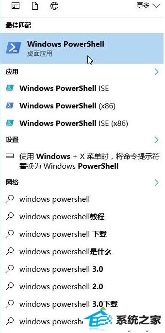 1、打开小娜,搜索“windows powershell”,在windows powershell上单击右键,选择“以管理员身份运行”;