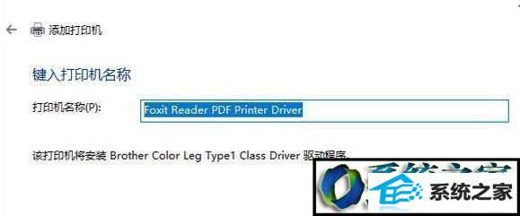 6、输入打印机名称:Foxit Reader pdF printer driver,再点击“下一步”;