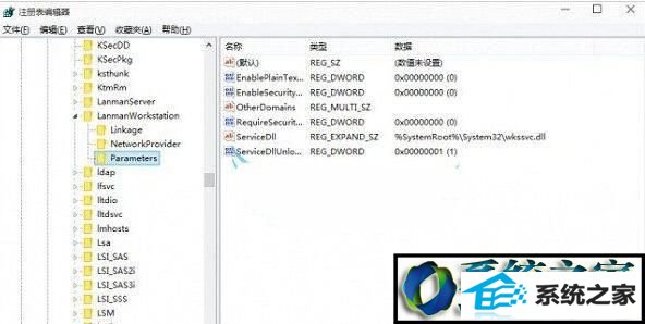 2、定位到HKLMsYsTEMCurrentControlsetservicesLanmanworkstationparameters;