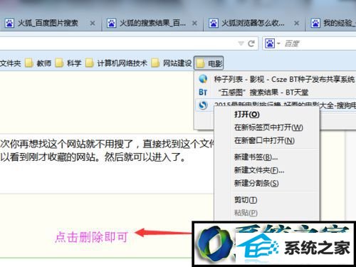 6、整个文件夹也可以一起删除,如果你不想看里面所有的网站了那就右键点击文件夹,选择删除即可。