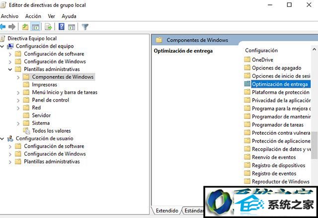 2、在左侧,您将看到选项“计算机配置”,在“管理模板”文件夹下,单击它,在右侧选择“windows组件”和子文件夹“交付优化”。 您只需选择文件“设置营业时间以限制后台下载的带宽”(英文:“设置营业时间限制后台下载带宽”);